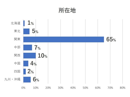 第1位は、当社の本店がある関東地方で65%(内、東京都が48%、東京都以外が17%)、関西地方10%、中部地方7%、九州・沖縄地方が6%、その他の地方が12%という構成で、全国にわたっております。