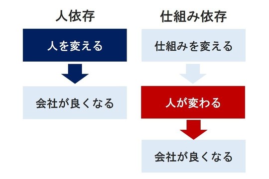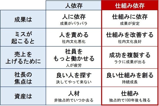 | 「人依存」の会社 | 「仕組み依存」の会社 | |